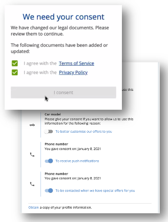 iWelcome provides Consent Lifecycle Management-as-a-Service for GDPR mandatory capabilities like capturing Document and Attribute Consent on multiple processing purposes, execute the Right to be forgotten, show 'What Identity data do you have about me?', data portability and the right to correct data.