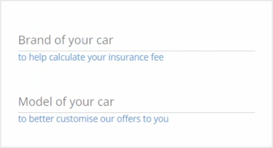- Before interaction, each free input field contains a customisable, greyed text label describing what the field is for.