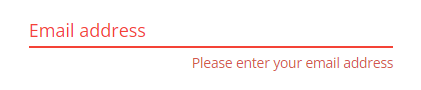 Error messages are used to inform the user that they have entered incorrect input. A message is displayed underneath the input field while the colour of the label changes to red. Error messages are fixed in design and it is not possible to customise their behaviour or text.