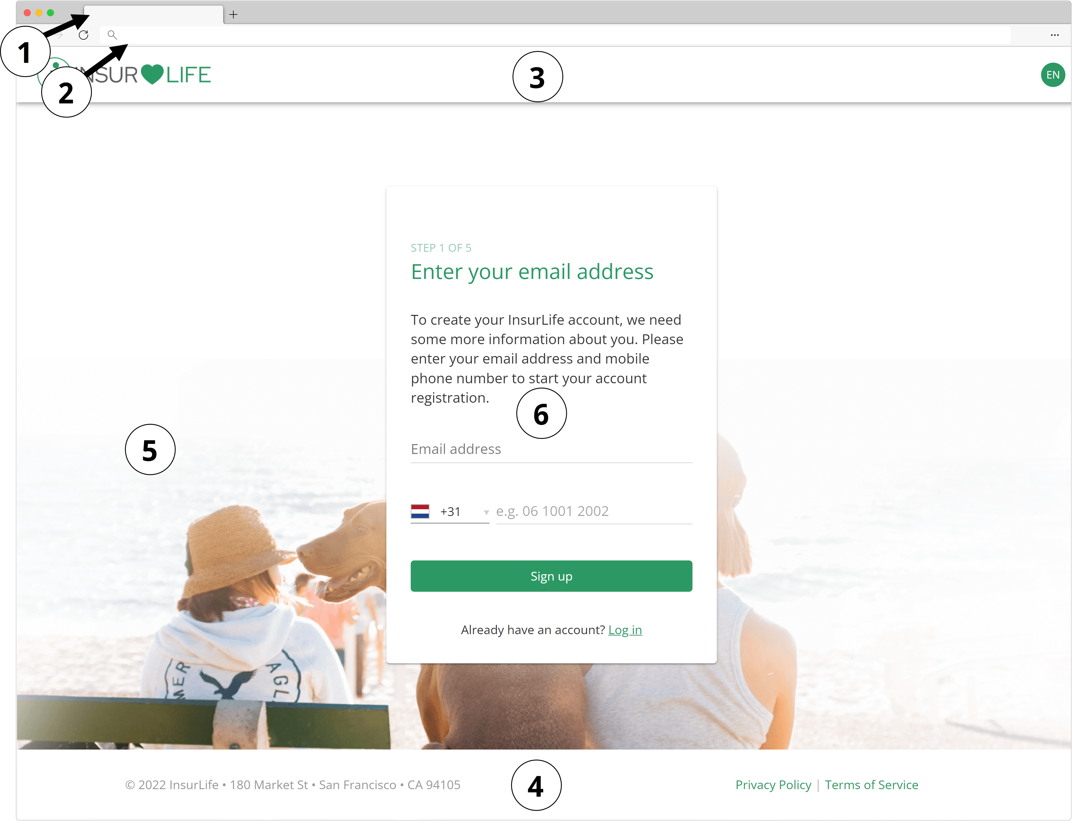 Browser tab titles are decided upon when you design the user journey with us. For the favicon, provide us with the favicon to be used for your brand.