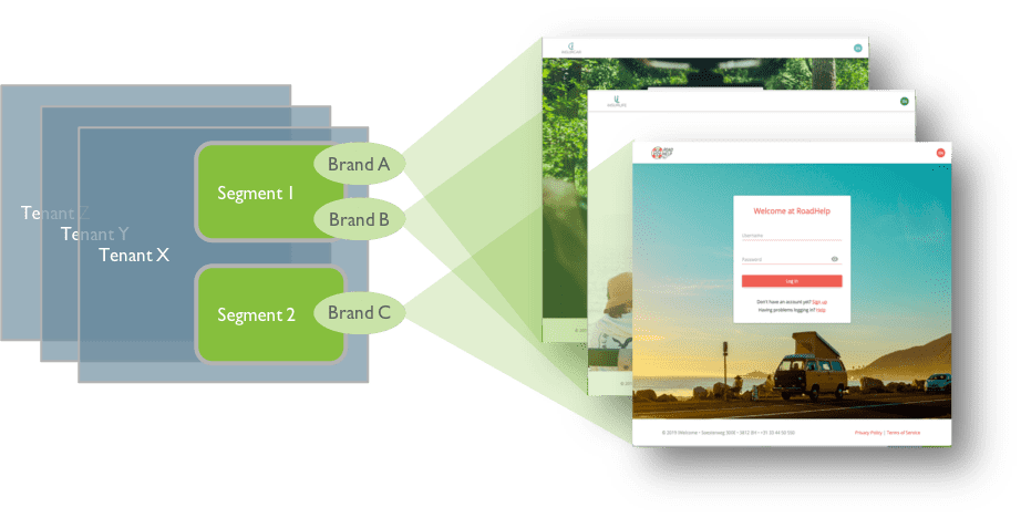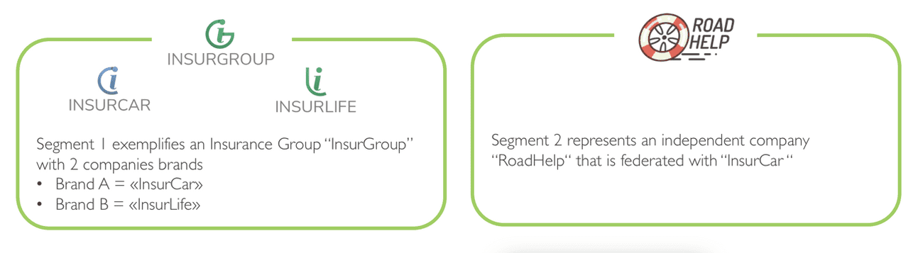 Authentication endpoint | NA | Per individual segment No native SSO across segments belonging to the same tenant | Segment-defined screens can be used with different “skins” Native SSO among Brands belonging to the same segment |
