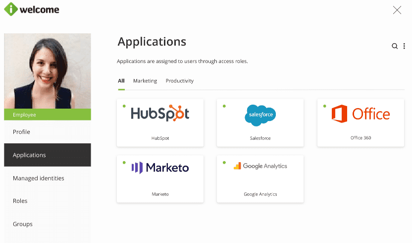 Assignation of applications to users through access roles. Grant users access to applications by assigning them with application roles within those applications.