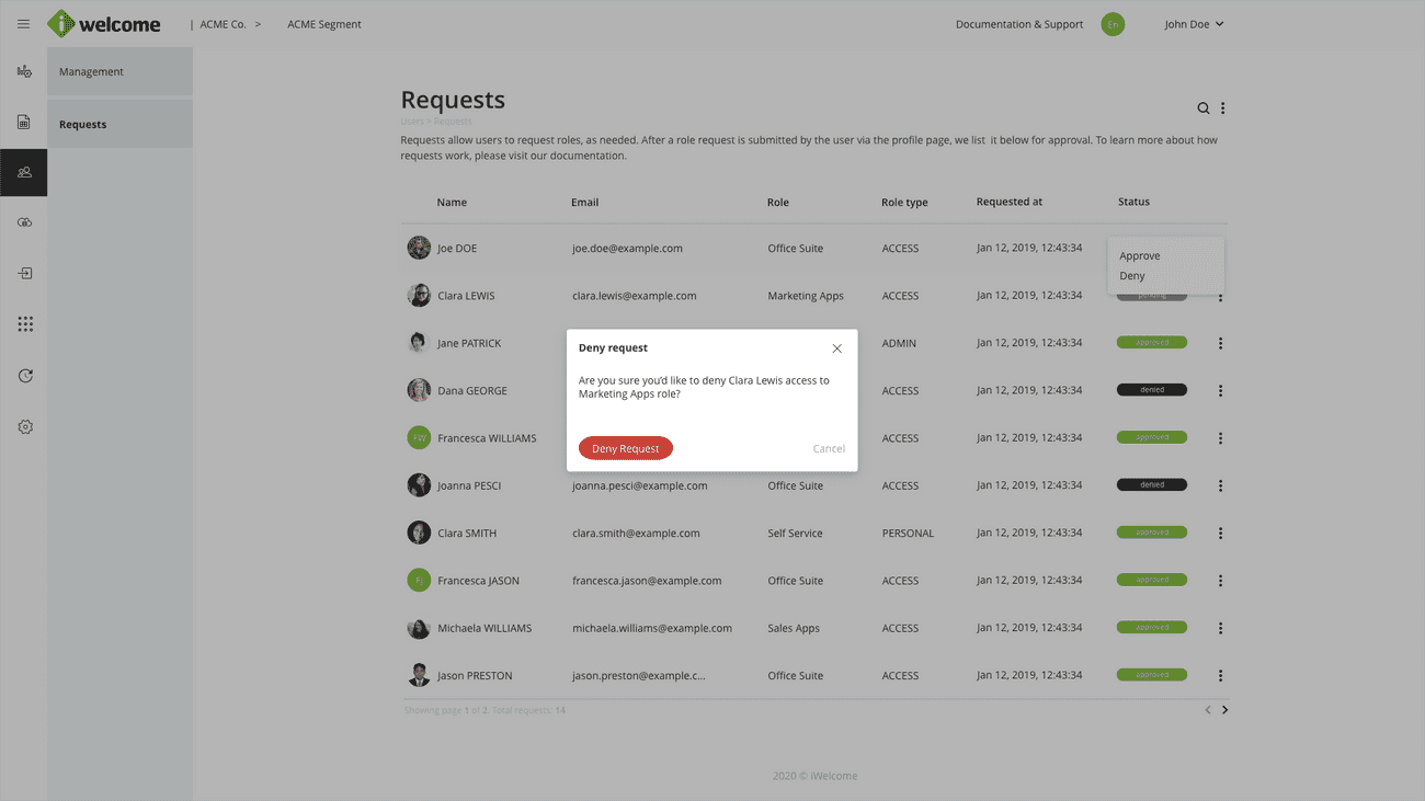 - Deny. Denies the request and prevents any further actions to be performed on it.