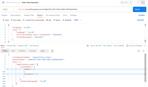 captured in the previous request. If the user provided valid information, all validation succeeds, and the user is created successfully, the workflow proceeds with the next steps until the next UserTask