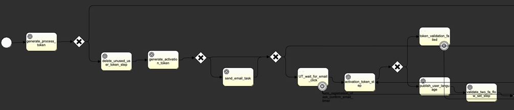 At this point, the user is created in the inactive state, which means that the activation flow gets initiated and sends a verification email to the email address that the user provided. The verification link in the email contains a processToken