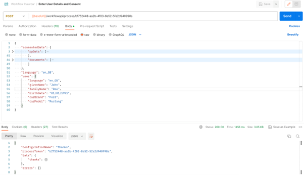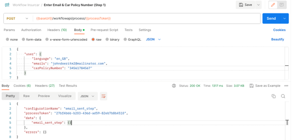 variable through the tests tab in the previous request. Use this variable to refer to the processToken