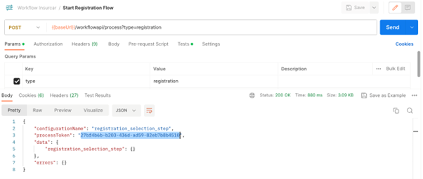 . We can use the API from the Start Registration Flow request in the provided Postman collection.