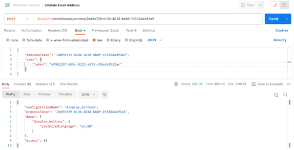 NOTE: For the remaining Postman requests, change the endpoint to point to the activation process token that you obtained from your email confirmation link.